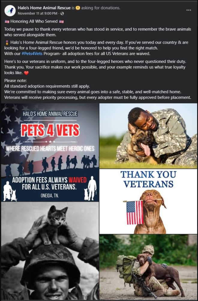 a rescue in my hometown who loves to help Pets.....AND Our Veterans.......Halos Home animal Rescues "Pets 4 Vets"