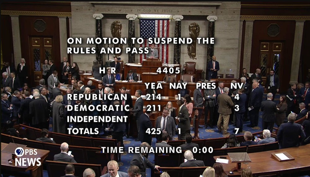 The House vote on the release of the Epstein files has passed with 425 YEA, 1 NAY and 7 abstaining.
